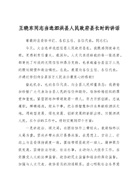 王晓东同志当选泗洪县人民政府县长时的讲话.docx