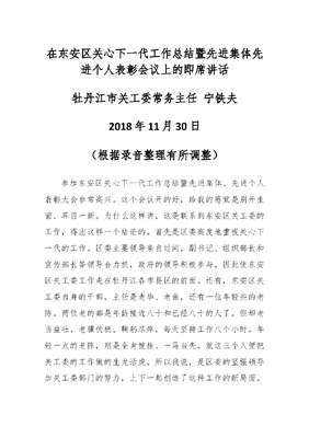 在东安区关心下一代工作总结暨先进集体先进个人表彰会议上的即席讲话.docx