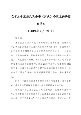 在省总十三届六次全委(扩大)会议上的讲话.docx