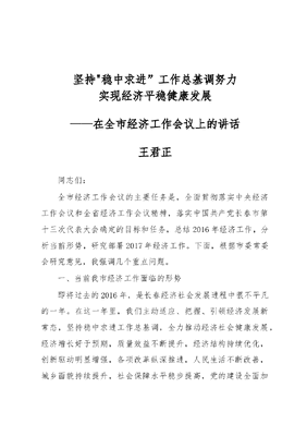 王君正:坚持“稳中求进”工作总基调努力实现经济平稳健康发展.docx