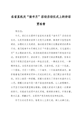 在省直机关“读书月”活动启动仪式上的讲话.docx