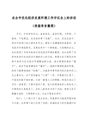 在全市优化经济发展环境工作评议会上的讲话.docx