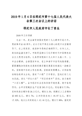 在邵武市第十七届人民代表大会第三次会议上的讲话.docx