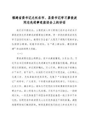 在市、县委书记学习廖俊波同志先进事迹座谈会上的讲话.doc