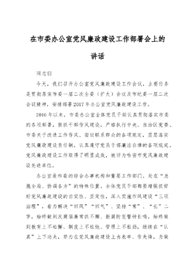 在市委办公室党风廉政建设工作部署会上的讲话.doc
