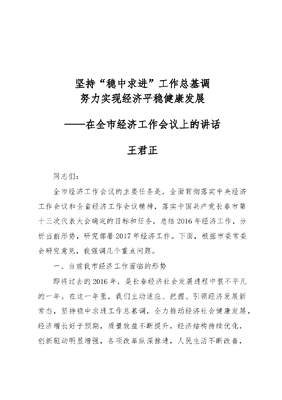 王君正:坚持“稳中求进”工作总基调 努力实现经济平稳健康发展.docx