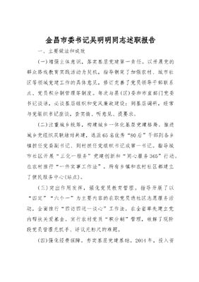 金昌市委书记吴明明同志抓党建述职报告.doc
