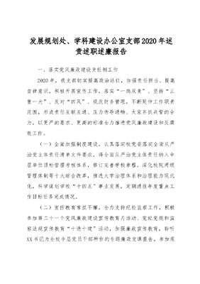 发展规划处、学科建设办公室支部2020年述责述职述廉报告.docx