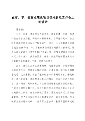 在省、市、县重点建设项目征地拆迁工作会上的讲话.docx
