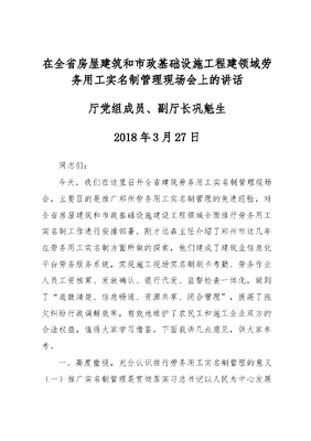 在全省房屋建筑和市政基础设施工程建设领域劳务用工实名制管理现场会上的讲话 .docx