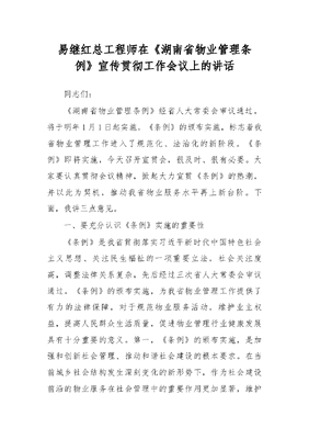 易继红总工程师在《湖南省物业管理条例》宣传贯彻工作会议上的讲话.docx