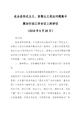 在全县形式主义、官僚主义突出问题集中整治行动工作会议上的讲话.docx