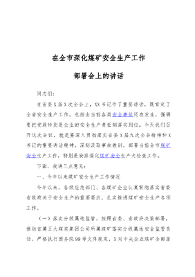 在全市深化煤矿安全生产工作部署会上的讲话.docx
