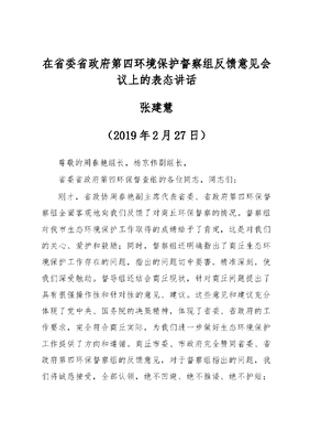 在省委省政府第四环境保护督察组反馈意见会议上的表态讲话.docx