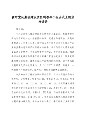 在市党风廉政建设责任制领导小组会议上的主持讲话.doc