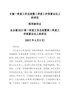 乡镇一季度工作总结暨二季度工作部署会议上的讲话.doc