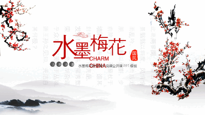 中国风水墨梅花简约文艺教师学习说课课件培训PPT模板.pptx