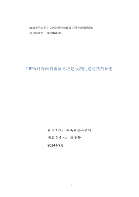 DEPA对海南自由贸易港建设的机遇与挑战研究(提交稿).docx