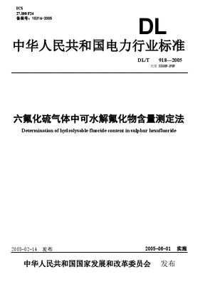 DLT918-2005 六氟化硫气体中可水解氟化物含量测定法.docx