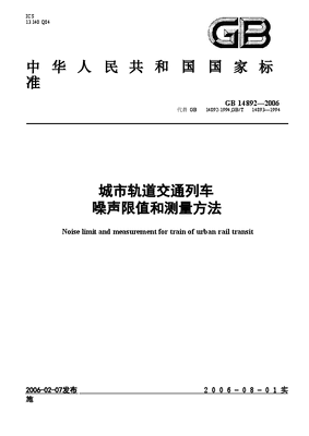 GB 14892-2006 城市轨道交通列车 噪声限值和测量方法.doc