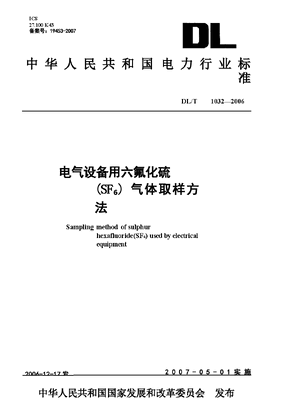 DLT1032-2006 电气设备用六氟化硫(SF6)气体取样方法.docx