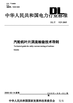 DLT925-2005 汽轮机叶片涡流检验技术导则.doc