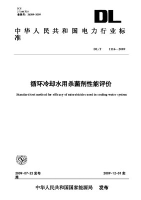 DLT1116-2009 循环冷却水用杀菌剂性能评价.docx