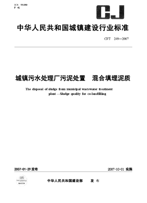 CJT249-2007 城镇污水处理厂污泥处置 混合填埋泥质.docx