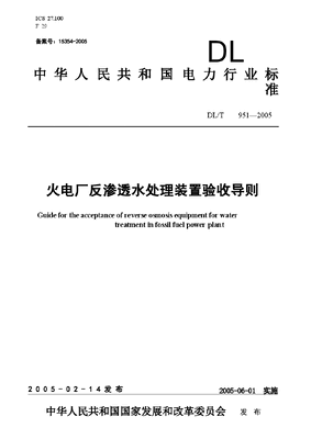 DLT951-2005 火电厂反渗透水处理装置验收导则.doc