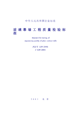 JGJT139-2001 玻璃幕墙工程质量检验标准(废止.docx