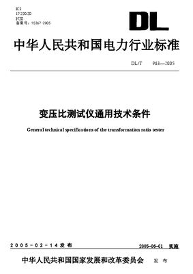 DLT963-2005 变压比测试仪通用技术条件.doc