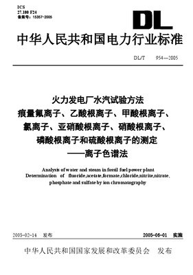 DLT954-2005 火力发电厂水汽试验方法.docx