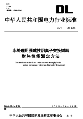 DLT953-2005 水处理用强碱性阴离子交换树脂耐热性能测定方法.doc
