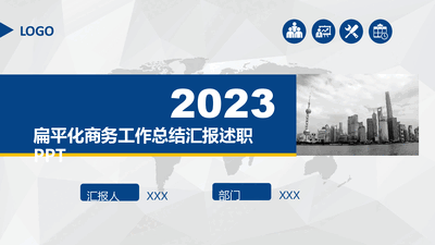 2023蓝色扁平化商务工作总结述职汇报PPT模板.pptx