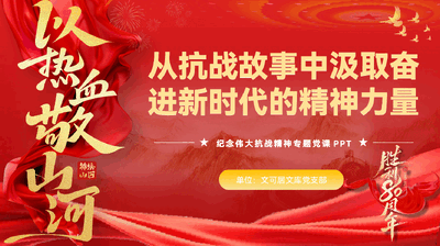 纪念伟大抗战精神专题党课PPT(附文稿):从抗战故事中汲取奋进新时代的精神力量.pptx