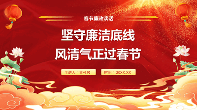 春节廉政教育PPT+讲稿:坚守廉洁底线,风清气正过春节.pptx