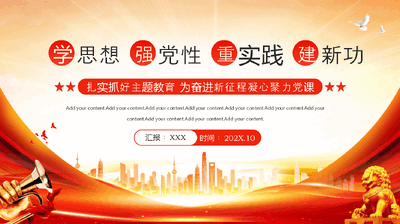 红色系主题教育PPT模板学思想强党性重实践建新功.pptx