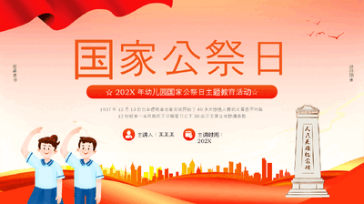 红色卡通风幼儿园国家公祭日主题PPT模板.pptx