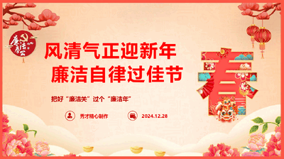 2025年元旦春节廉政教育《风清气正迎新年 廉洁自律过佳节》(PPT+文字稿).pptx