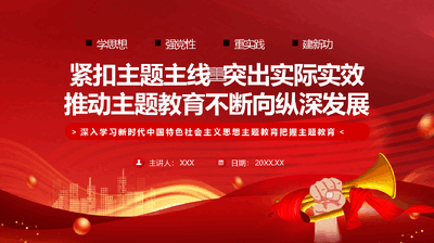 红色系党课PPT紧扣主题主线 突出实际实效推动主题教育不断向纵深发展.pptx