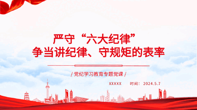 党纪党课ppt+讲稿:严守“六大纪律” 争当讲纪律、守规矩的表率.pptx