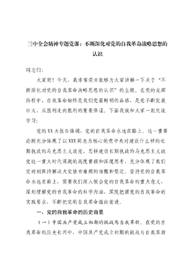 三中全会精神专题党课PPT+讲稿(PPT分开上传):不断深化对党的自我革命战略思想的认识.docx