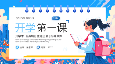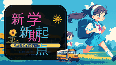 蓝色插画风新学期新起点PPT模板.pptx