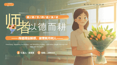 绿色插画风教师节师德演讲PPT模板.pptx