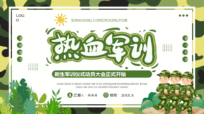 绿色卡通风新生军训仪式动员大会PPT模板.pptx
