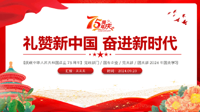 2024建国75周年喜迎国庆PPT精美简洁风礼赞新中国奋进新时代党课.pptx