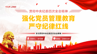 主题党课PPT+讲稿:贯彻中央纪委四次全会精神,强化党员管理教育,严守纪律红线.pptx