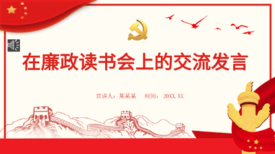 红色国风在廉政读书会上的交流发言PPT模板.pptx