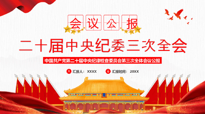 红色中国共产党第二十届中央纪律检查委员会第三次全体会议公报宣讲PPT.pptx