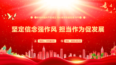 庆祝中国共产党成立104周年党课PPT(附文稿):坚定信念强作风,担当作为促发展.pptx
